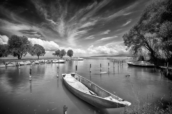 Photography about fisherman boat in lake,hight definition photo, 4800x3200 - 300 dpi