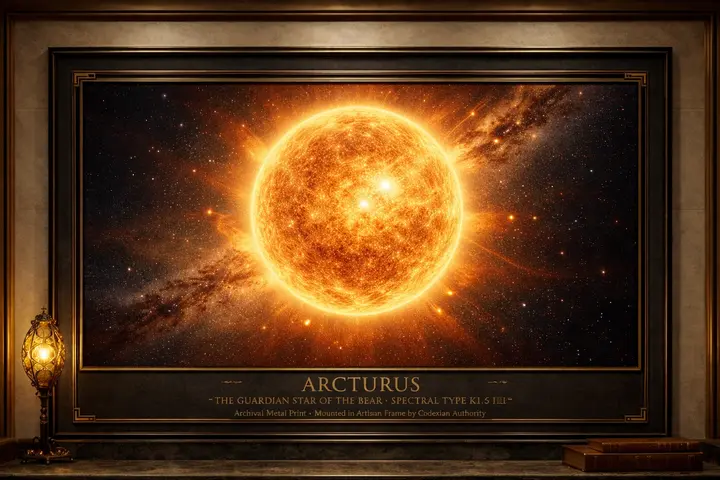 A blazing golden sun suspended in deep space, radiating like a sovereign beacon—ancient, watchful, and exact. The image reads as a celestial mandate: Arcturus as the guiding lighthouse of the Elysiu