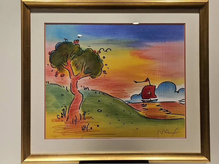 Radiating calm and color, Quiet Lake III by Peter Max exemplifies the artist’s iconic use of bold hues and fluid forms. Created in 2000, this limited-edition lithograph invites viewers into a serene