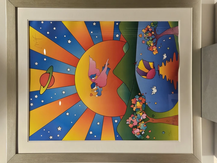 A celebration of balance, color, and interconnectedness, Universal Harmony by Peter Max captures the artist’s visionary worldview. Created in 2001, this limited-edition lithograph combines celestial