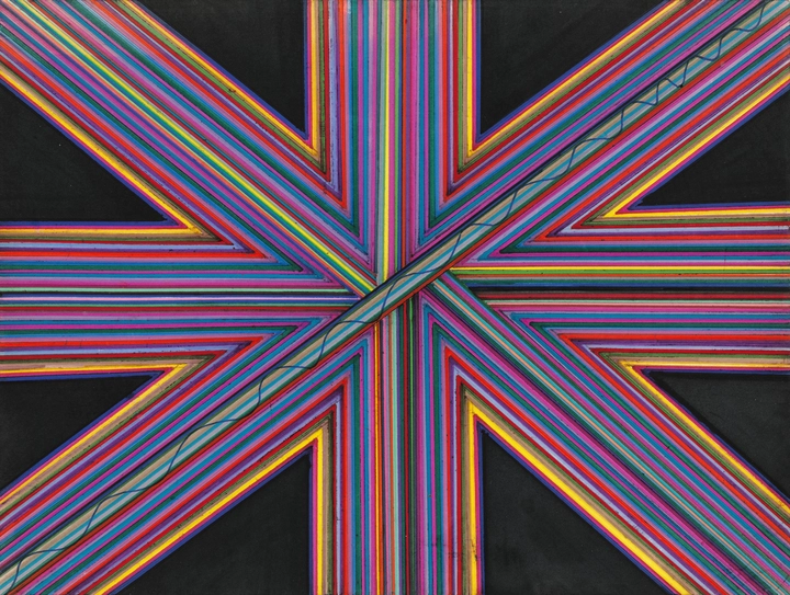"Fortunate" is a visually striking artwork composed of concentric and intersecting lines that pulse with a hypnotic rhythm. The interplay of vibrant colors and carefully placed negative space create