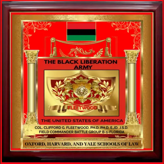 ~Black Liberation Army Col. Clifford G. Fleetwood III, Field Commander Battle Group B-1 Florida Commemorative Plaque~