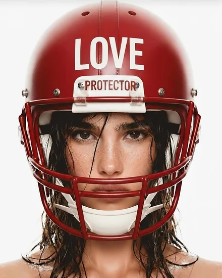 "LOVE PROTECTOR" - This striking pop art portrait offers a bold and unconventional statement, merging the iconography of sports with a powerful feminine presence. The juxtaposition of the protective