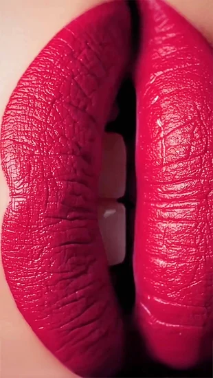 "VERTICAL LIPS" - This pop art-inspired image features a close-up of vibrant red lips, rendered with a textured, almost painterly quality. The vertical composition emphasizes the sensuous curves and