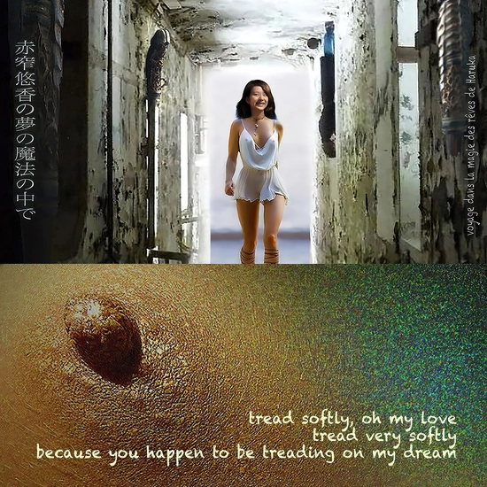 In this digital work where figurative and visual poetry are mixed, I explore the fragility of our most cherished aspirations. We discover the central figure of Haruka, gentle and dreamy, who embodie