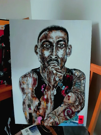 Painting of a Christian pastor which was done in 2019 as an exhibition piece, in oils and arcylic which was used to produce artwork and image