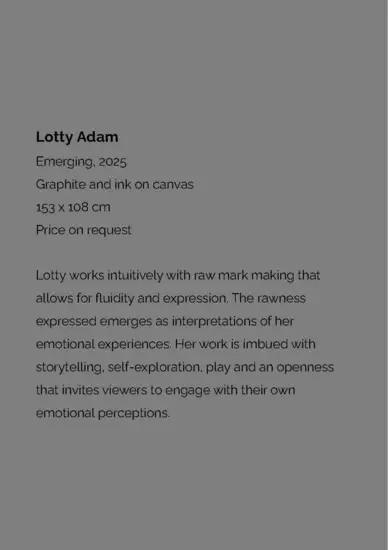 Lotty Adam (b. 1992) is an expressionist artist exploring life's complex and ephemeral nature. She studies her perceptions of the world, investigating both her changing emotional experience and soci