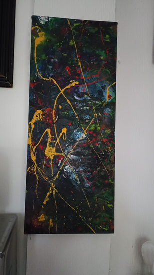 Personal empirical art work in abstract expressionism created by action painting in mixture with other techniques discovering constelations of my inner theatre inhabited by multiples phantoms and un