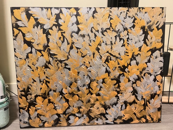 Knife painting with metallic acrylic paint.