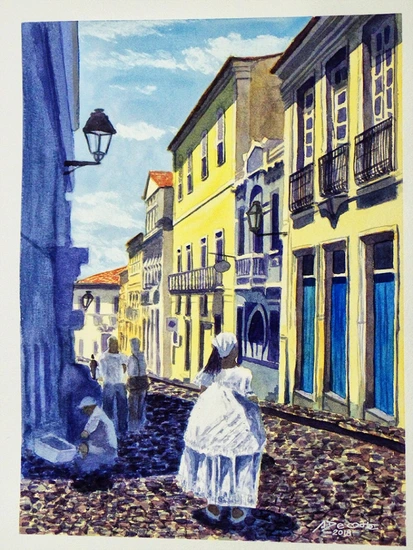 A street of Salvador Bahia with a baiana