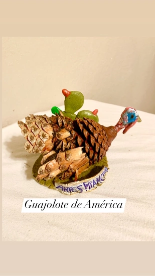 Fue hecho de un piñón de pino y mezcla de lleno cemequin arcilla fue y agua de soda Coca-Cola y colores naturales y caseros.