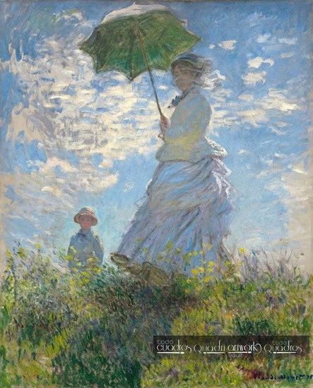 “La passeggiata” di claude monet mostra sua moglie Camille e il loro figlio Jean mentre camminano su una collina. Il quadro cattura un momento tranquillo all’aperto, con una luce morbida che illumin