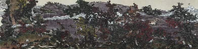 This monumental painting, created in the traditional technique of wash on silk, is a contemporary allegory for the balance of our world: the balance of nature, of living beings, the balance of polit