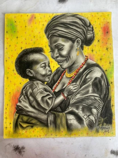 This artwork speaks about the love of a mother to her kids