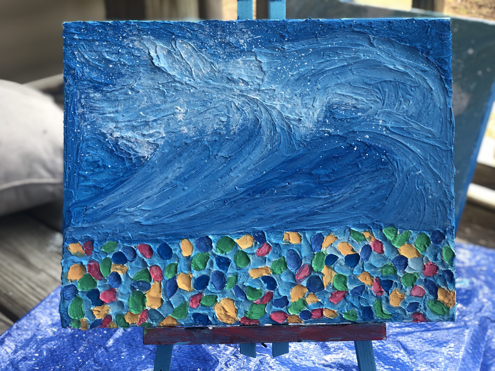 This piece will transport you away on a wave of playful adventure. Become immersed by the calming array of blue hues and the magic of colorful seaglass