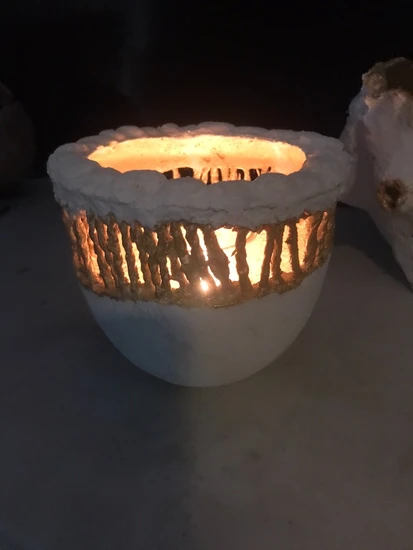 Painted with Acrylic and Metallic colors, gold inside and gives positive energy