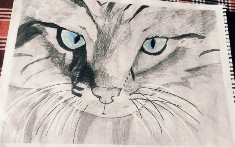 Manshav's Captivating Pencil Drawing of a Cat's Piercing Gaze