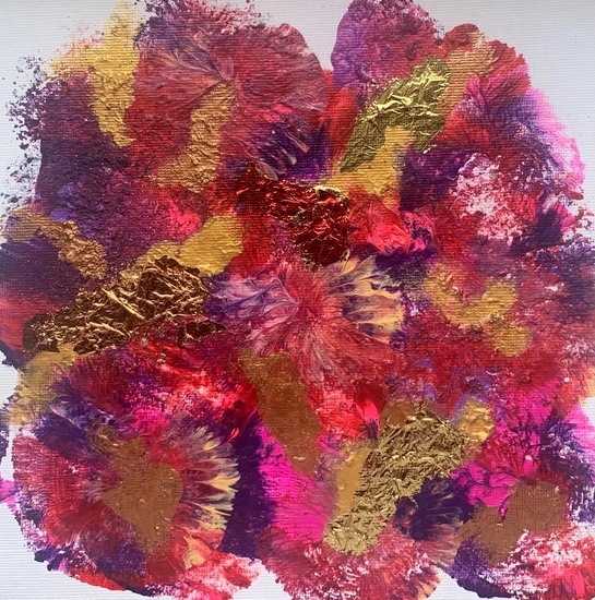 Acrylic Paint and gold leaf on cotton canvas panel. Unique, abstract art.