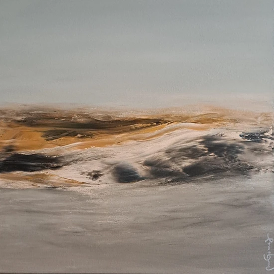 Arid landscape, with subtle textures and earthy tones in which the horizon line reinforces the immensity and emptiness characteristic of this type of environment.